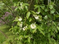 Při procházce kolem Fontány amorků vás může uchvátit růžovec bělokvětý (Rhodotypos scadens), který se v evropských zahradách pěstuje až od druhé poloviny 19. století, kdy byl přivezen ze své domoviny v Číně či v Japonsku. Z opačného konce světa pochází severoamerická kráska halézie karolínské (Halesia Carolina). Díky křehkým bílým kvítkům, jež ji v průběhu května obsypou, bývá často přezdívána sněženkový strom. Narazíte na ni u Divokého rybníka. Do bíla zbarvené květy upozorňují také na pěnišník (Rhododendron) nebo kaliny (Viburnum). V Podzámecké zahradě narazíte na atraktivní odrůdy kaliny obecné (Viburnum opulus Roseum) a kaliny tušalaj (Viburnum lantana). Její květy jsou sněhově bílé, kulaté a pod jejich množstvím se keř často sklání.