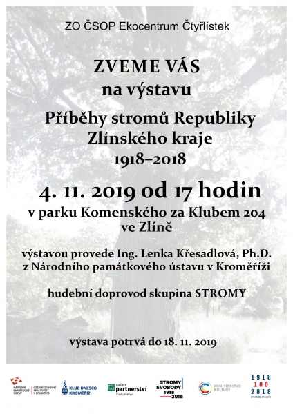 Putovní výstava Příběhy stromů Republiky Zlínského kraje 1918–2018 je aktuálně k vidění v parku Komenského za Klubem 204 ve Zlíně.